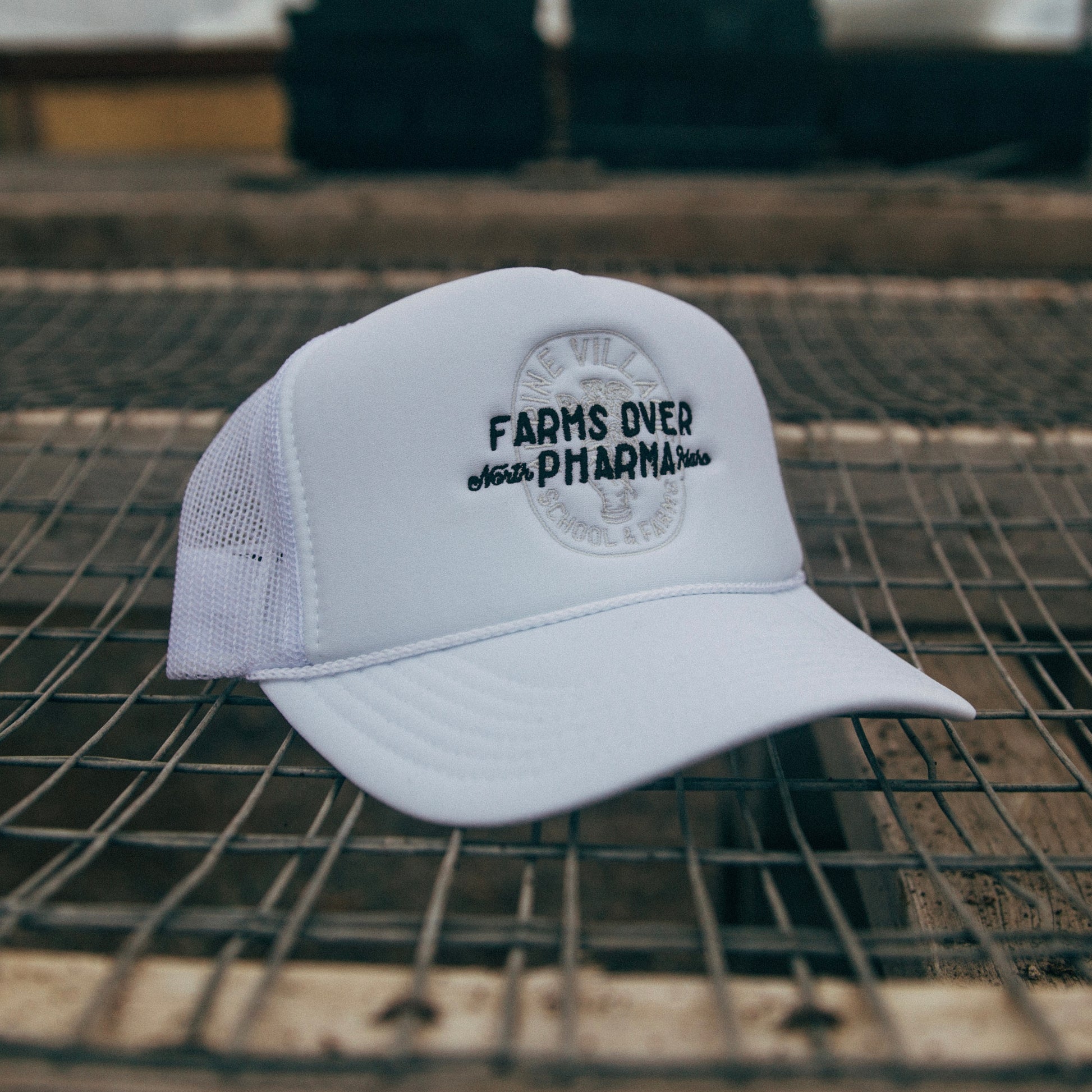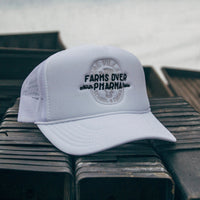 FARMS OVER PHARMA TRUCKER HAT (WHITE WITH BLACK/WHITE)